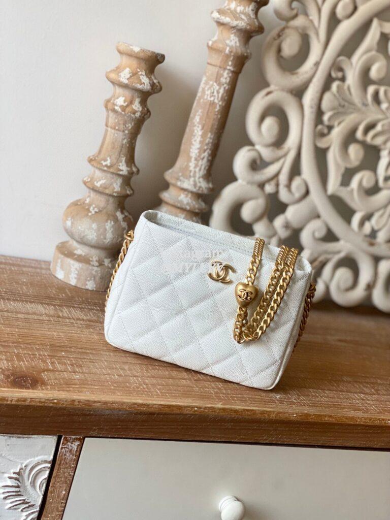 Top Quality Version:MYLLVV » Chanel Diamond Plaid Caviar Cowhide Hobo Bag White With Gold AS3830
