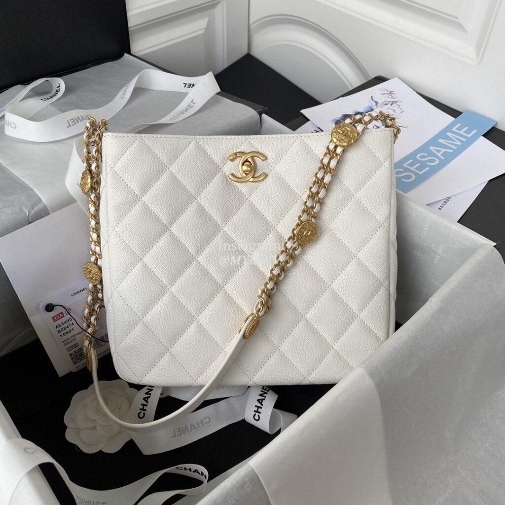 Top Quality Version:MYLLVV » Chanel Diamond Plaid Caviar Cowhide Hobo Bag White With Gold AS3400