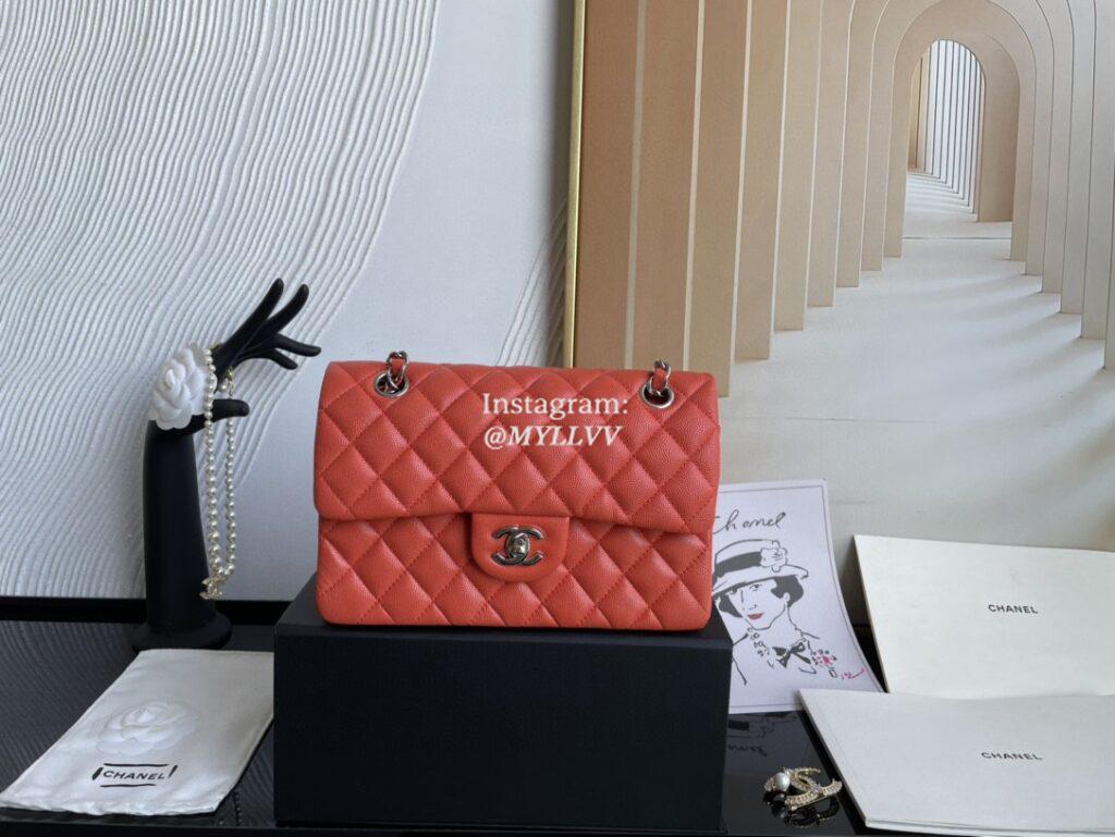 Top Quality Version:MYLLVV » Chanel Diamond Plaid Caviar Cowhide Leather Classic Flap Bag Orange With Silver 01117