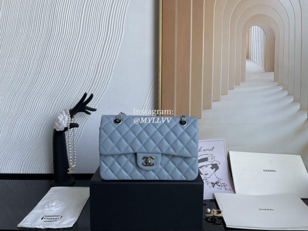 Top Quality Version:MYLLVV » Chanel Diamond Plaid Caviar Cowhide Leather Classic Flap Bag Water Blue With Silver 01117