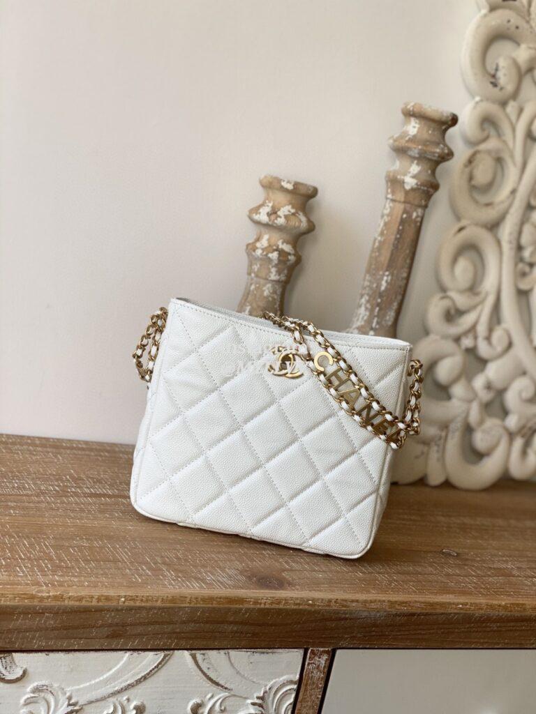 Top Quality Version:MYLLVV » Chanel Diamond Plaid Caviar Cowhide Leather Mini Shoulder Bag White With Gold AS3223