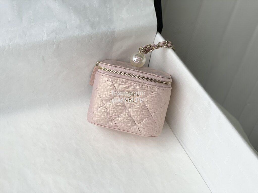 Top Quality Version:MYLLVV » Chanel Diamond Plaid Caviar Cowhide Mini Box Bag Pearlescent Pink With Gold 81091