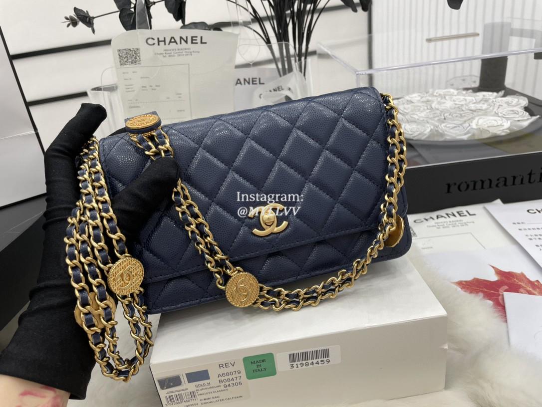 Dimension: 19.0 cm Top Quality Version:MYLLVV » Chanel Diamond Plaid Caviar Cowhide Mini Shoulder Bag Dark Blue A68079
