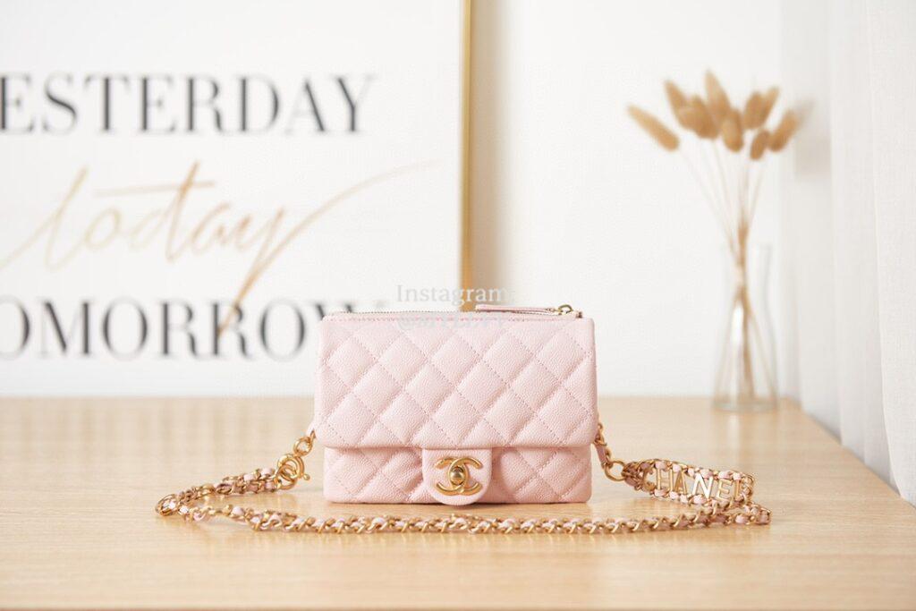 Top Quality Version:MYLLVV » Chanel Diamond Plaid Caviar Cowhide Pocket Bag Pink With Gold AS3225