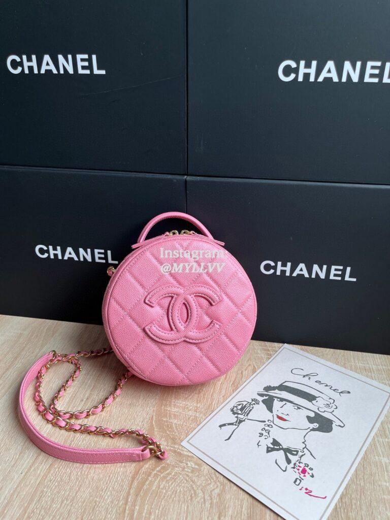 Top Quality Version:MYLLVV » Chanel Diamond Plaid Caviar Cowhide Round Bag Rose Red With Gold AS3875