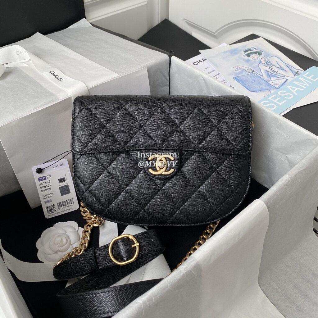 Top Quality Version:MYLLVV » Chanel Diamond Plaid Caviar Cowhide Saddle Bag Black With Gold AS2485