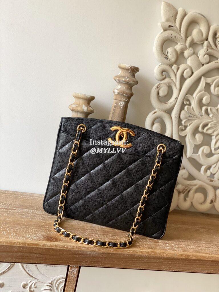 Top Quality Version:MYLLVV » Chanel Diamond Plaid Caviar Cowhide Shopping Bag Black With Gold A98