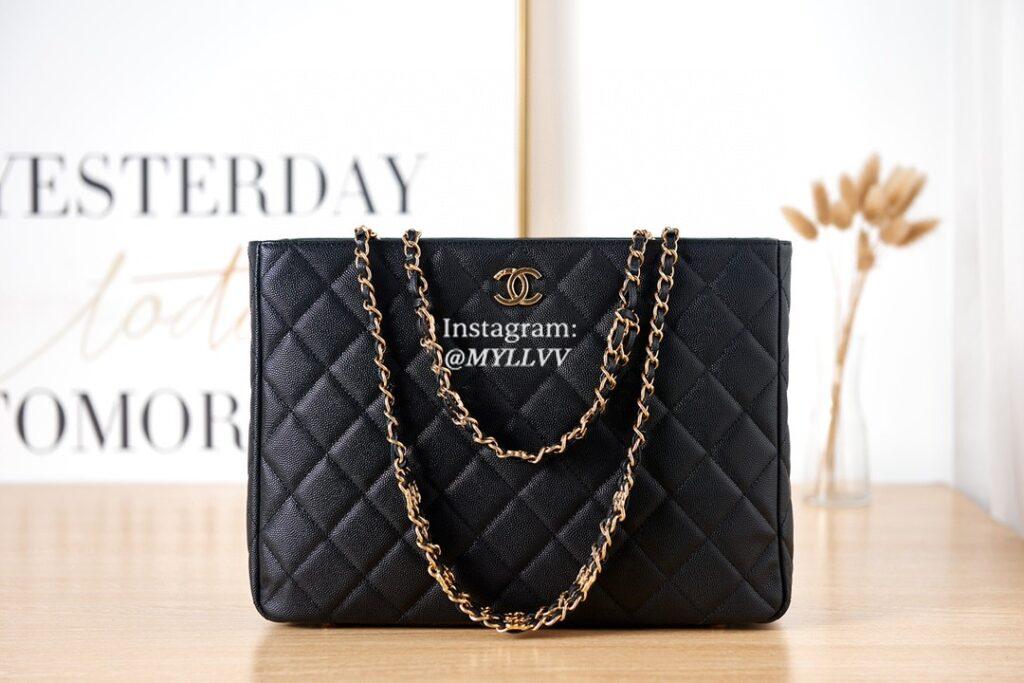 Top Quality Version:MYLLVV » Chanel Diamond Plaid Caviar Cowhide Shopping Bag Black With Gold AS3583