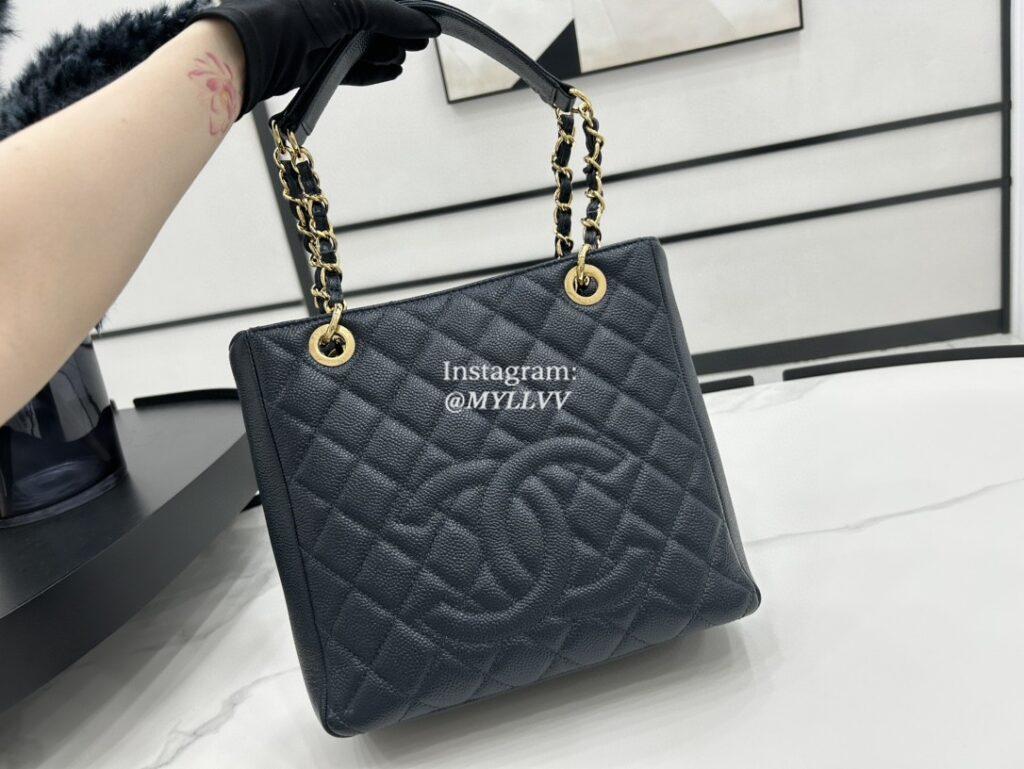 Top Quality Version:MYLLVV » Chanel Diamond Plaid Caviar Cowhide Shopping Bag Dark Blue With Gold 50994