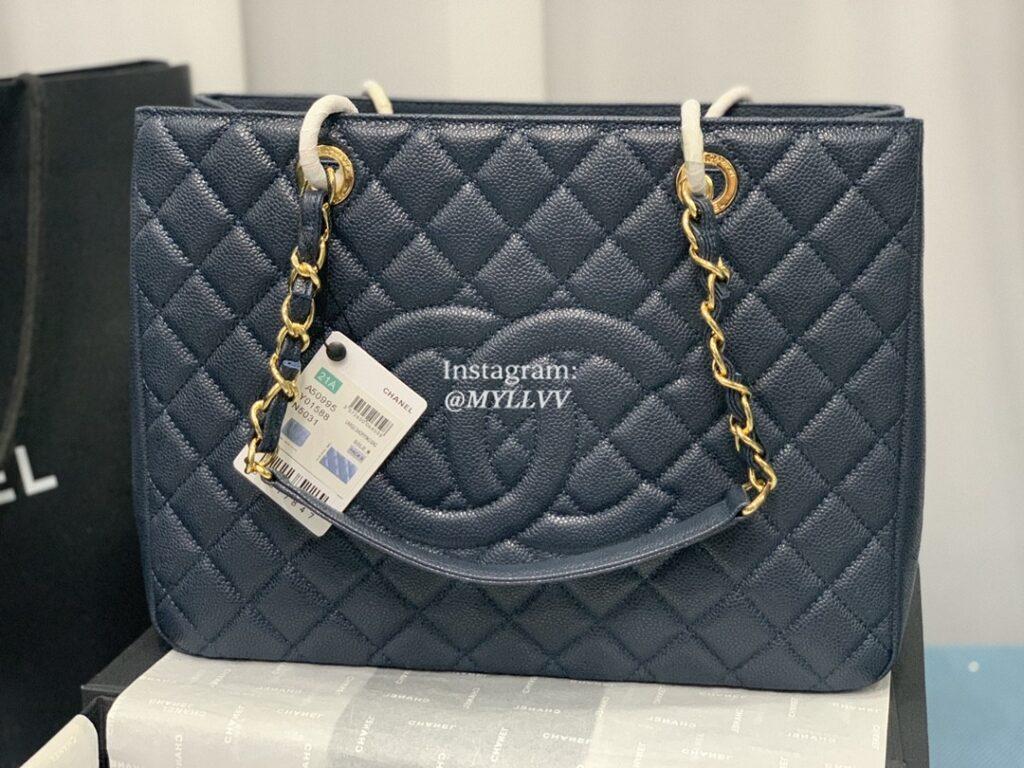 Top Quality Version:MYLLVV » Chanel Diamond Plaid Caviar Cowhide Shopping Bag Dark Blue With Gold 50995