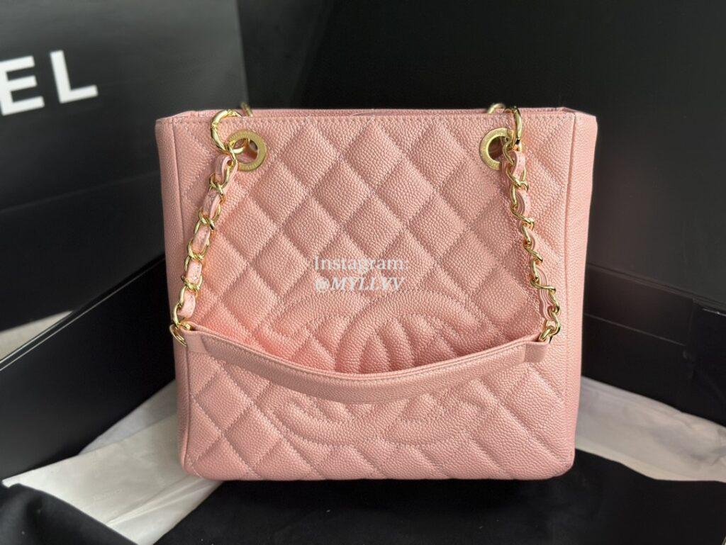 Top Quality Version:MYLLVV » Chanel Diamond Plaid Caviar Cowhide Shopping Bag Pink With Gold 50994
