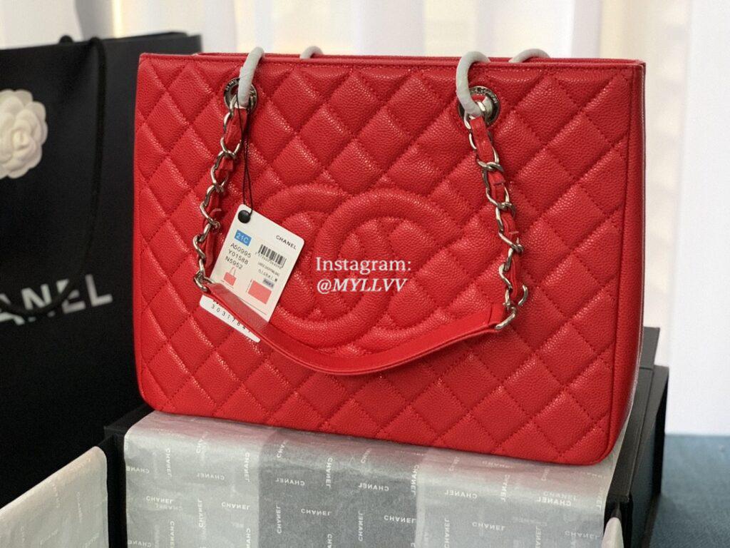 Top Quality Version:MYLLVV » Chanel Diamond Plaid Caviar Cowhide Shopping Bag Red With Silver 50995