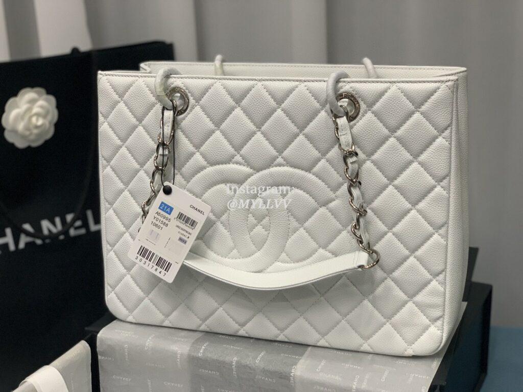 Top Quality Version:MYLLVV » Chanel Diamond Plaid Caviar Cowhide Shopping Bag White With Silver 50995
