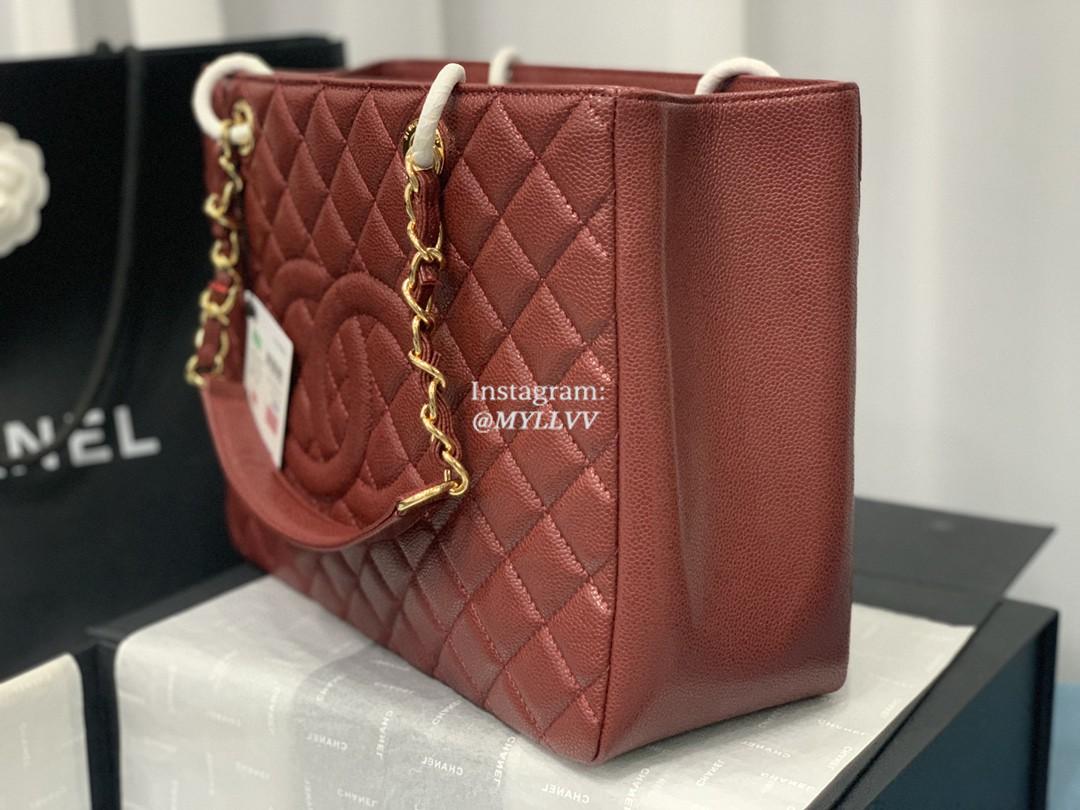 Top Quality Version:MYLLVV » Chanel Diamond Plaid Caviar Cowhide Shopping Bag Wine Red With Gold 50995