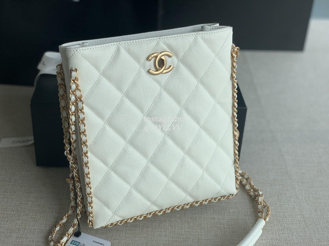 Top Quality Version:MYLLVV » Chanel Diamond Plaid Caviar Cowhide Shoulder Bag White With Gold A3470