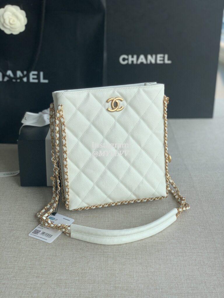 Top Quality Version:MYLLVV » Chanel Diamond Plaid Caviar Cowhide Shoulder Bag White With Gold A3470