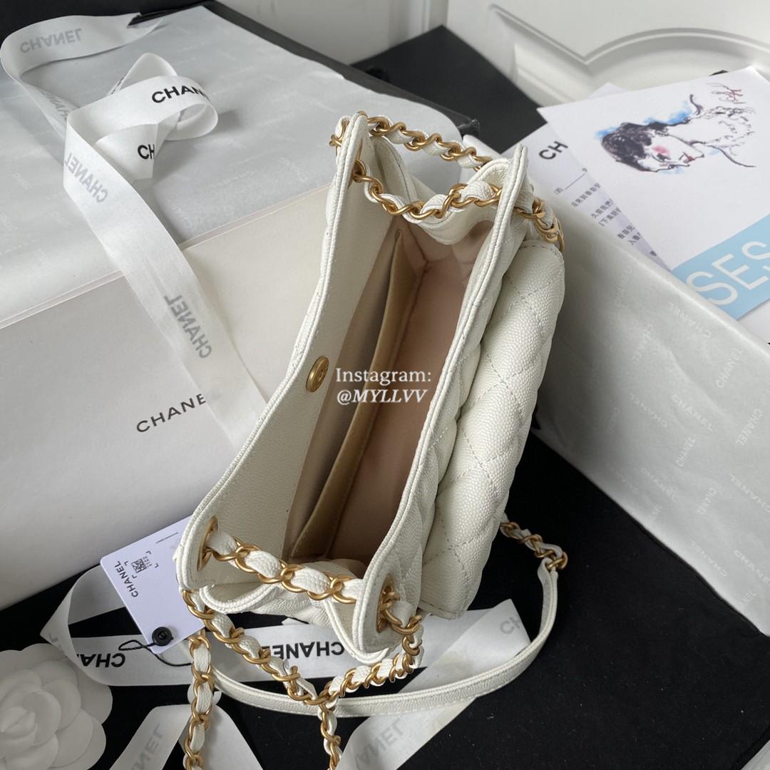Top Quality Version:MYLLVV » Chanel Diamond Plaid Caviar Cowhide Shoulder Bag White With Gold AS3710