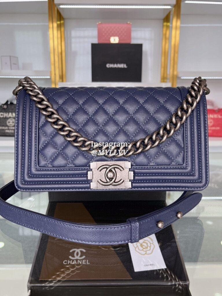 Top Quality Version:MYLLVV » Chanel Diamond Plaid Caviar Cowhide Shoulder Chain Bag Blue With Silver A67086