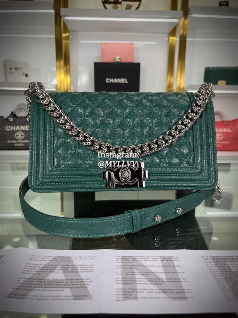 Top Quality Version:MYLLVV » Chanel Diamond Plaid Caviar Cowhide Shoulder Chain Bag Green With Silver A67086