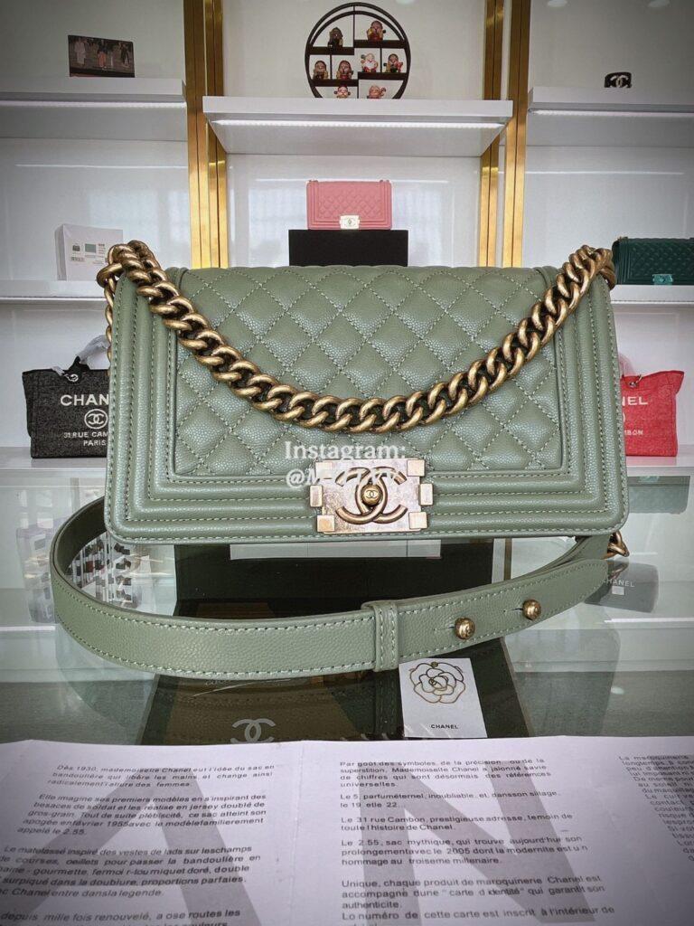Top Quality Version:MYLLVV » Chanel Diamond Plaid Caviar Cowhide Shoulder Chain Bag Military Green With Gold A67086
