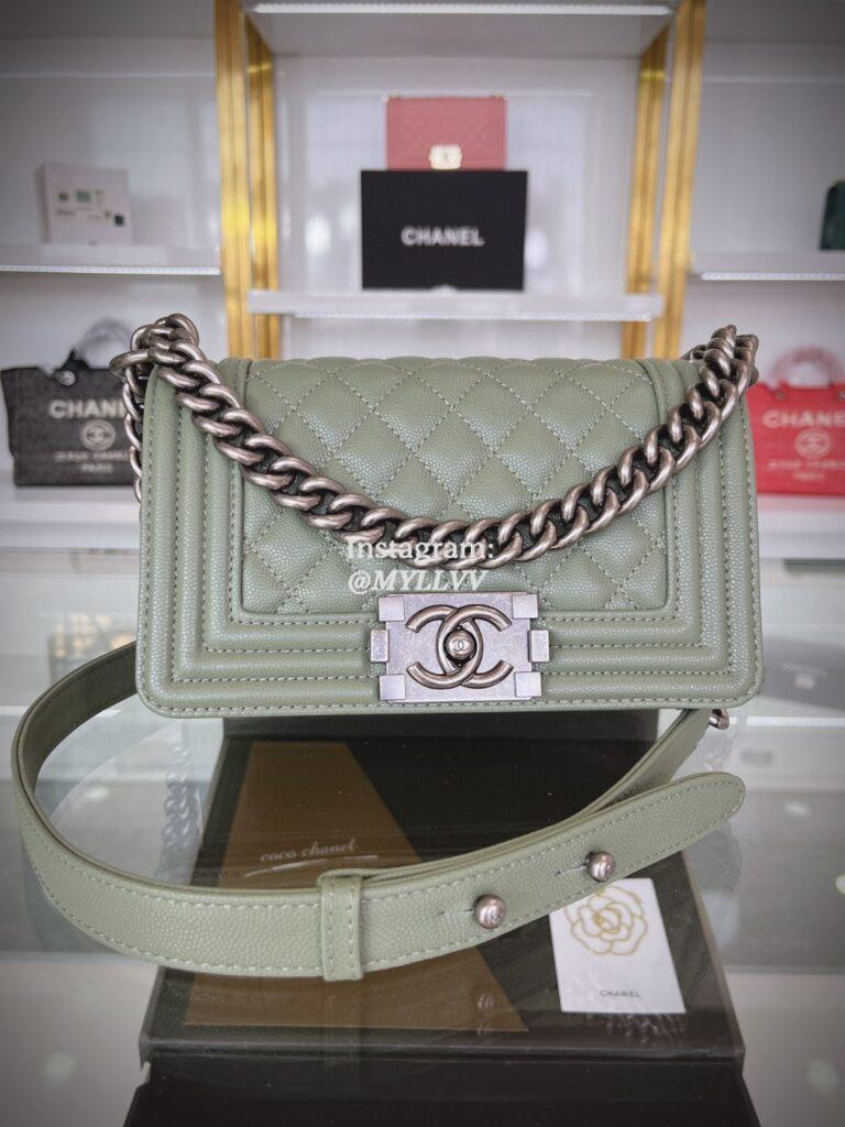 Top Quality Version:MYLLVV » Chanel Diamond Plaid Caviar Cowhide Shoulder Chain Bag Military Green With Silver A67085