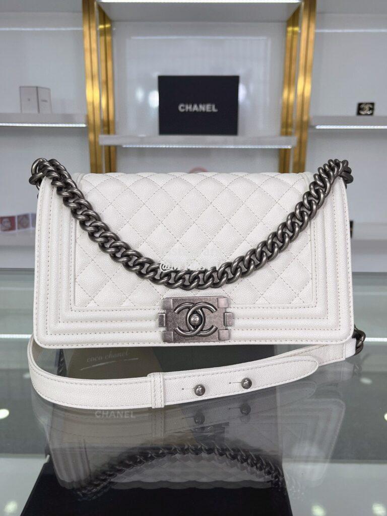 Top Quality Version:MYLLVV » Chanel Diamond Plaid Caviar Cowhide Shoulder Chain Bag White With Silver A67086