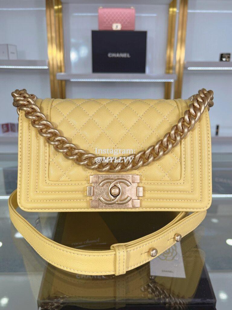 Top Quality Version:MYLLVV » Chanel Diamond Plaid Caviar Cowhide Shoulder Chain Bag Yellow With Gold A67085