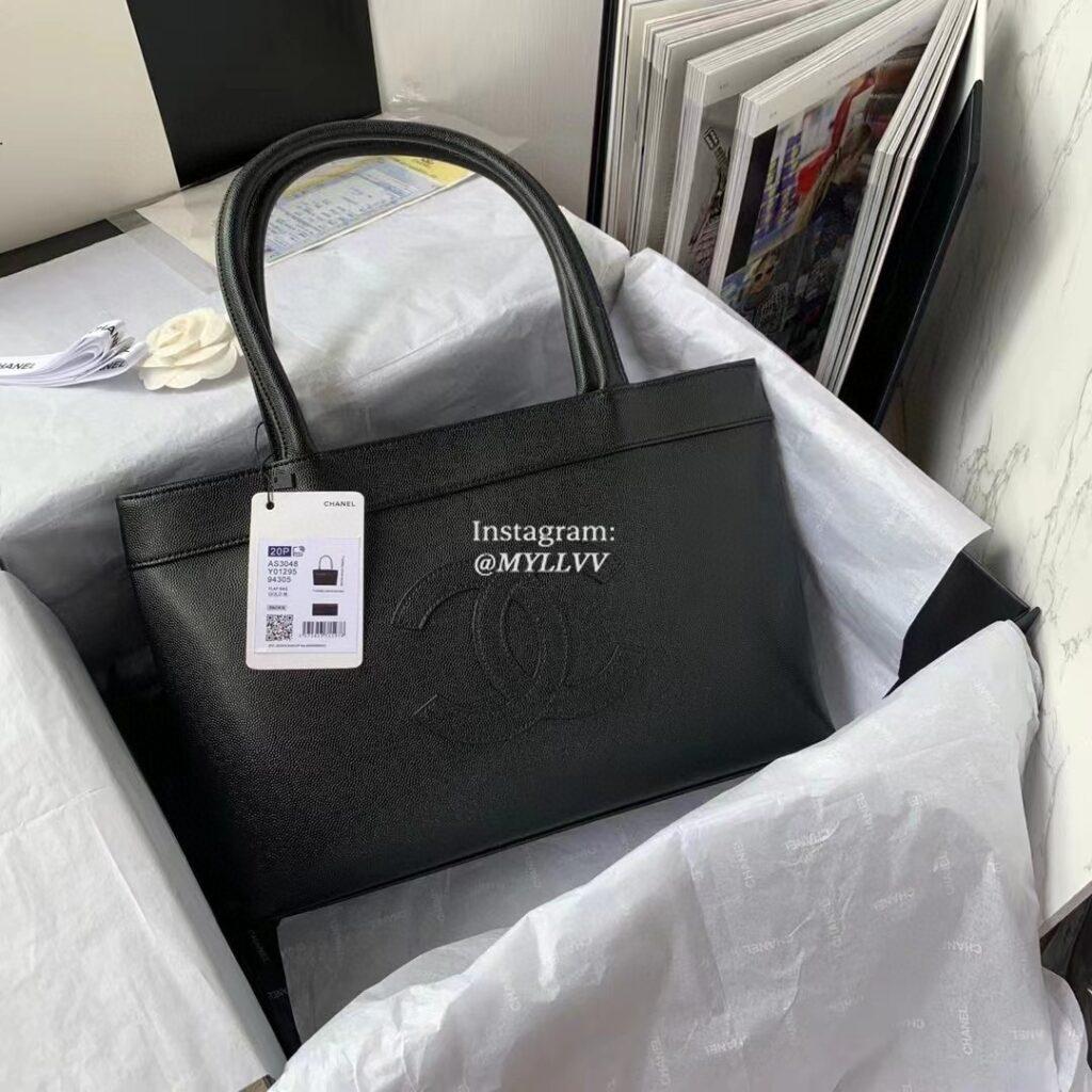 Top Quality Version:MYLLVV » Chanel Diamond Plaid Caviar Cowhide Tote Bag Black With Gold AS3048