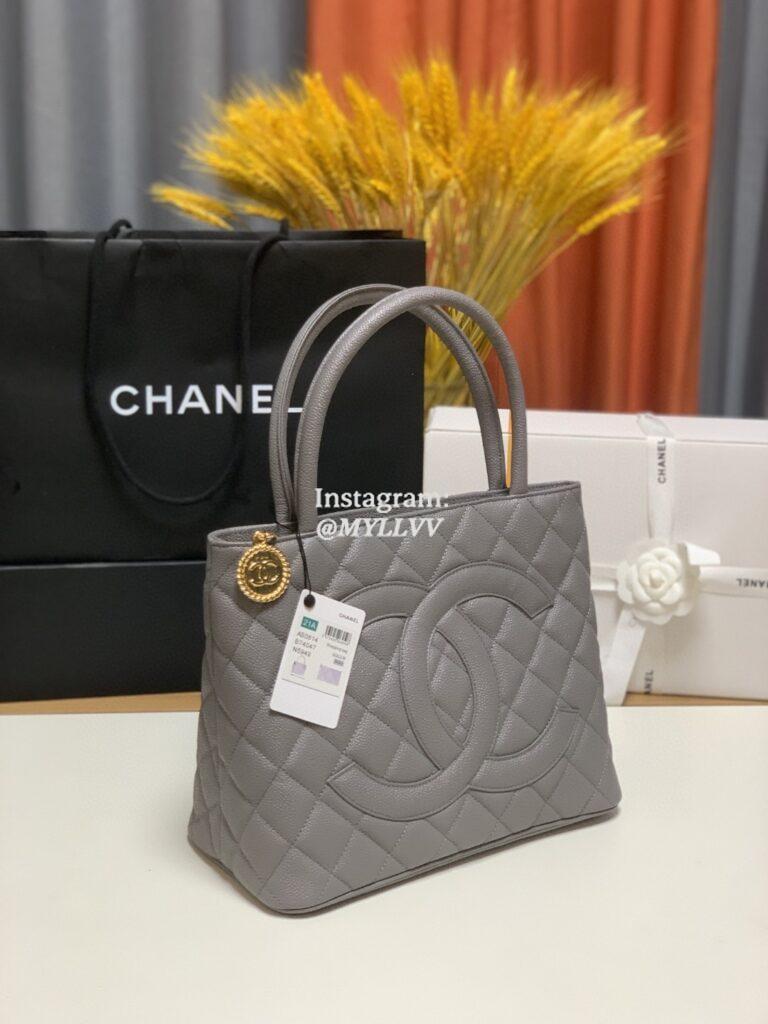 Top Quality Version:MYLLVV » Chanel Diamond Plaid Caviar Cowhide Tote Bag Grey With Gold AS0814