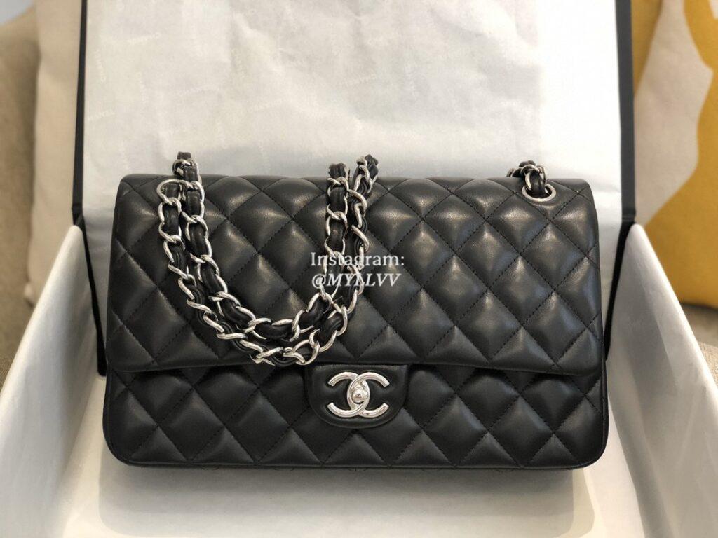 Top Quality Version:MYLLVV » Chanel Diamond Plaid Classic Flap Lambskin Shoulder Bag Black With Sliver A037587