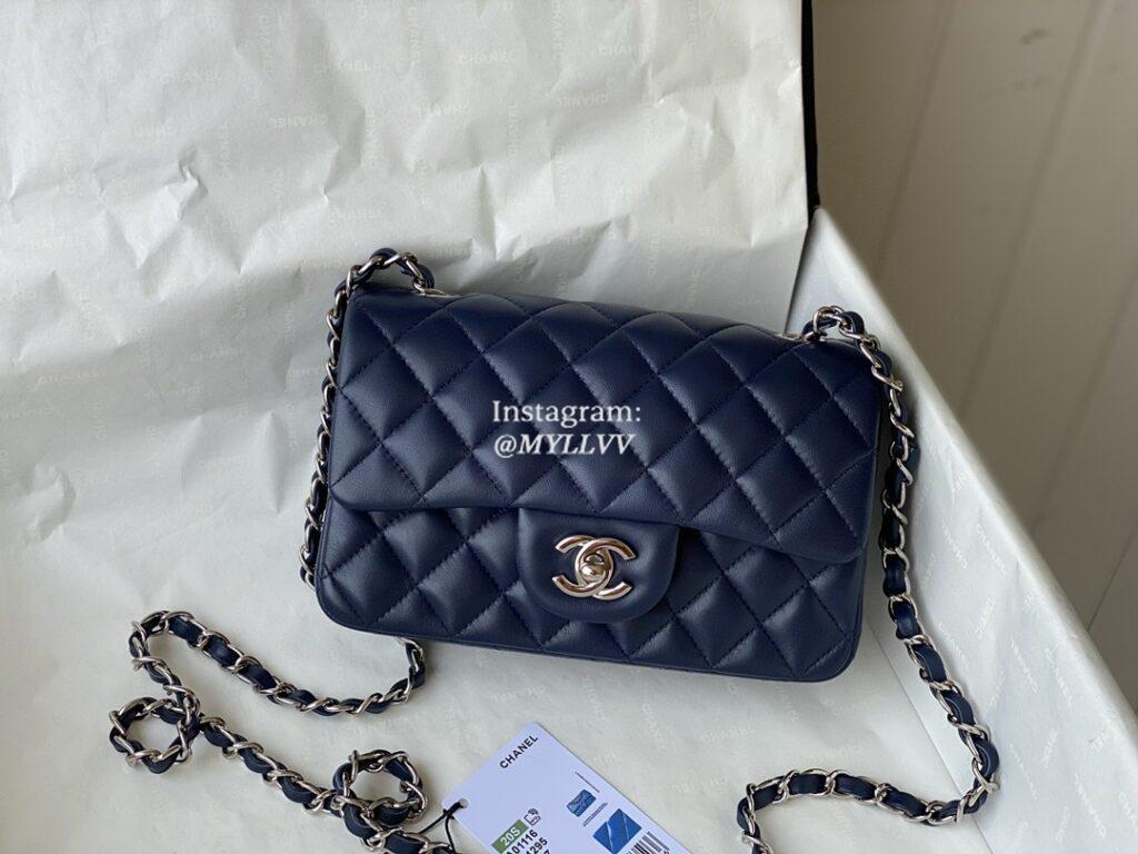 Top Quality Version:MYLLVV » Chanel Diamond Plaid Classic Flap Lambskin Shoulder Bag Dark Blue With Sliver AS1116