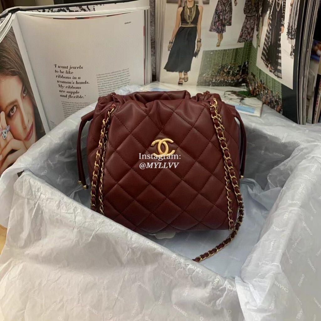Top Quality Version:MYLLVV » Chanel Diamond Plaid Cowhide Bucket Bag Wine Red With Gold AS2322