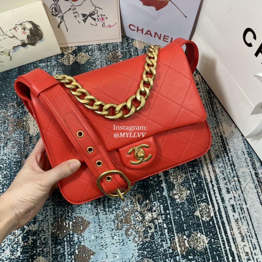 Top Quality Version:MYLLVV » Chanel Diamond Plaid Cowhide Chain Flap Bag Red With Gold AS2842
