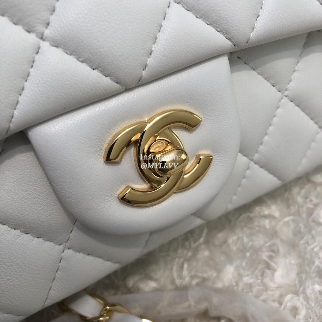 Dimension: 20.0 cm Top Quality Version:MYLLVV » Chanel Diamond Plaid Lambskin Classic Flap Bag White With Gold 5500