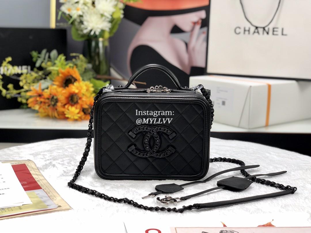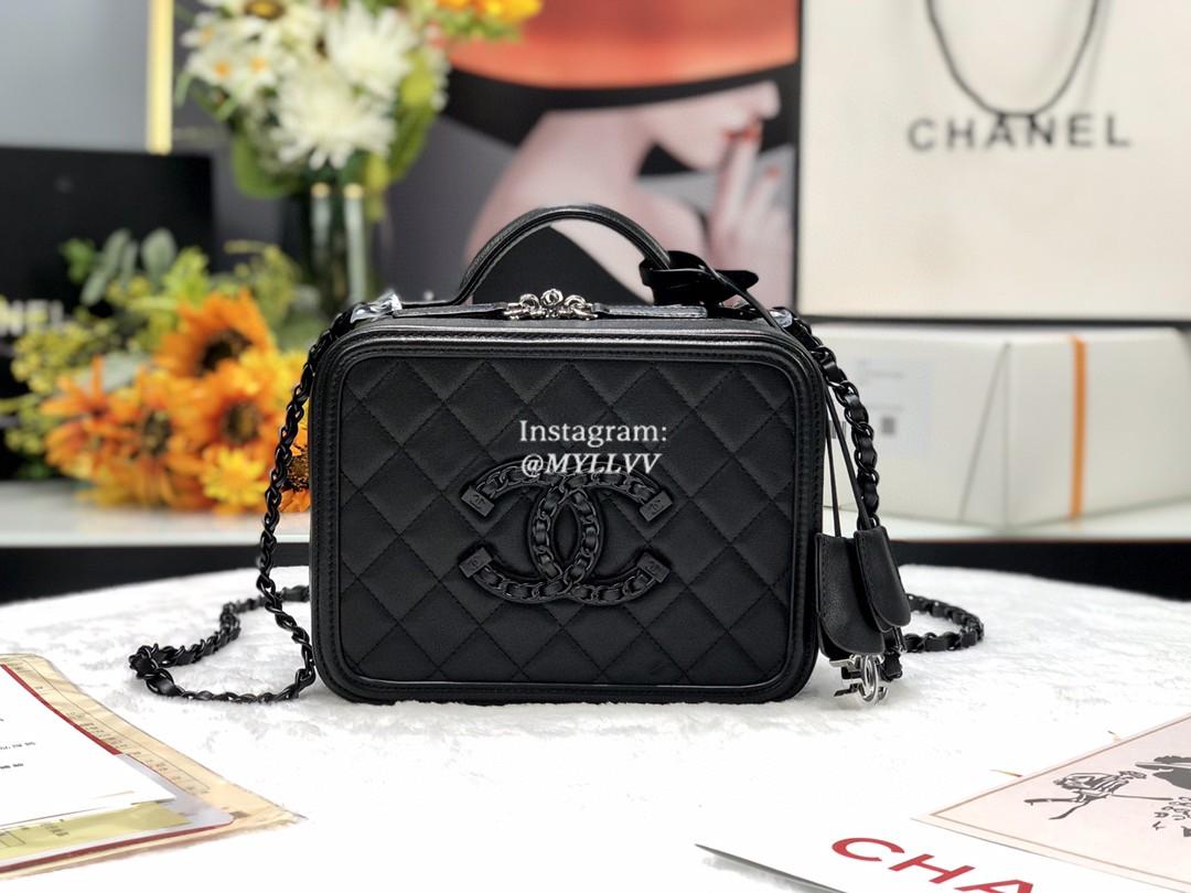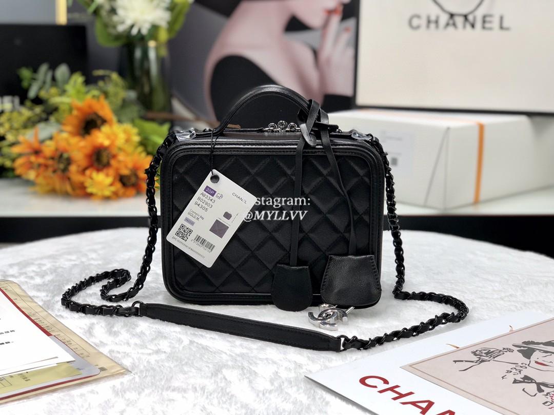 Dimension: 21.0 cm Top Quality Version:MYLLVV » Chanel Diamond Plaid Cowhide Cosmetic Bag Black AS93343