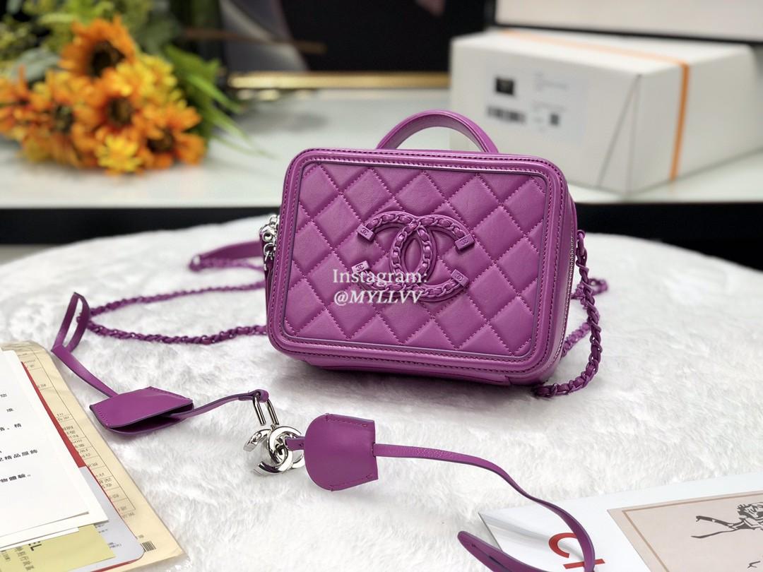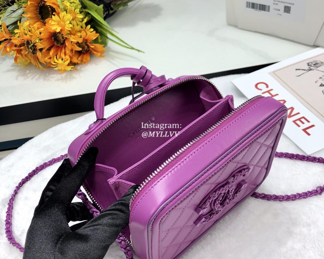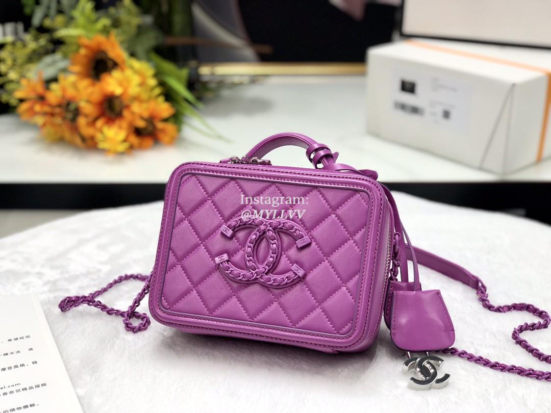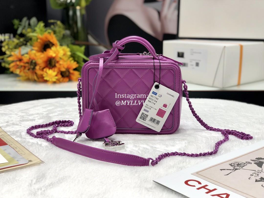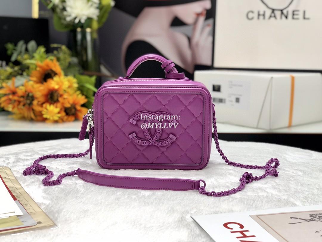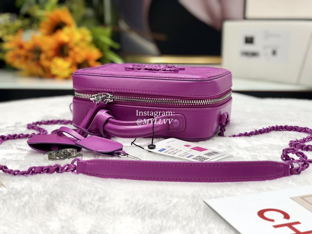 Dimension: 18.0 cm Top Quality Version:MYLLVV » Chanel Diamond Plaid Cowhide Cosmetic Bag Purple Small AS1785