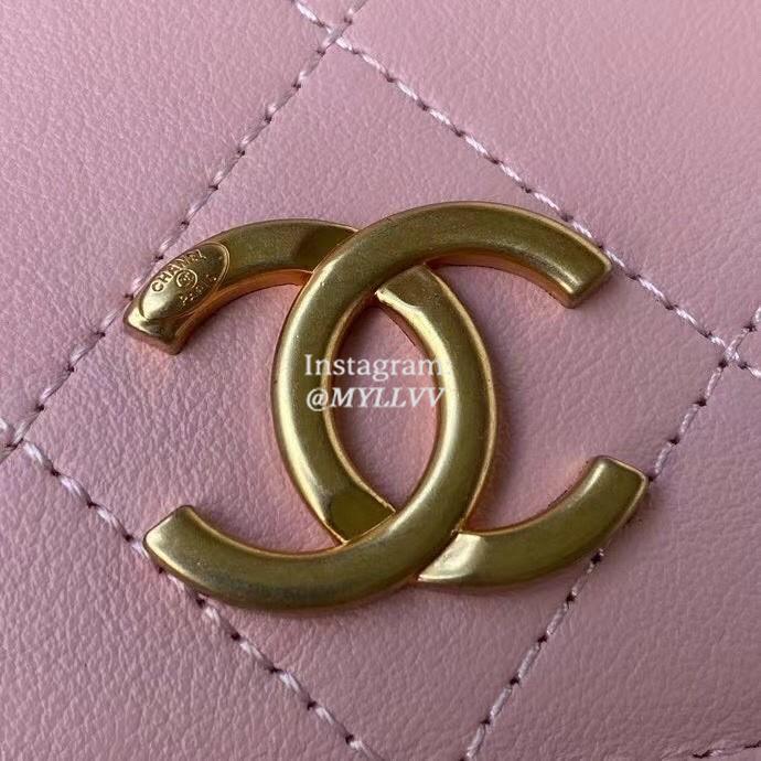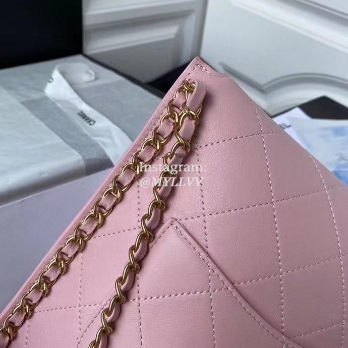 Top Quality Version:MYLLVV » Chanel Diamond Plaid Cowhide Flap Bag Pink With Gold Large AS2543