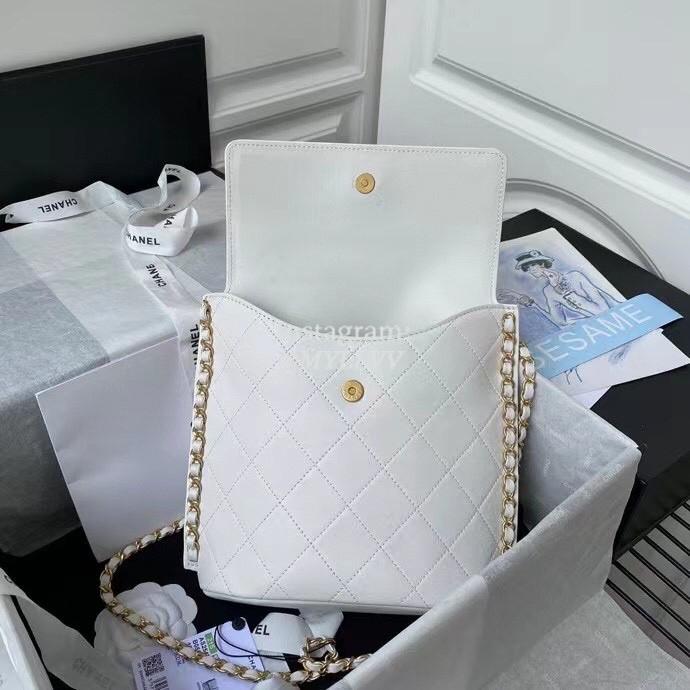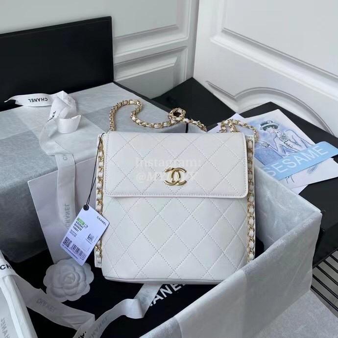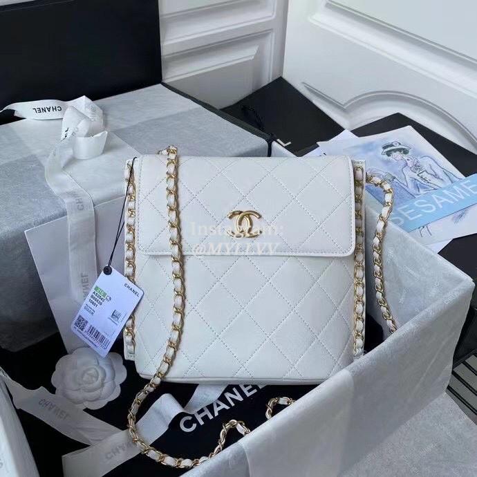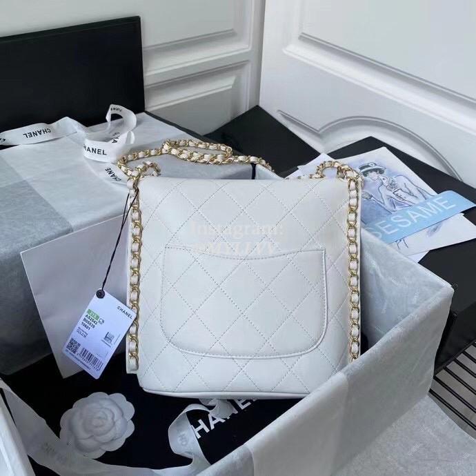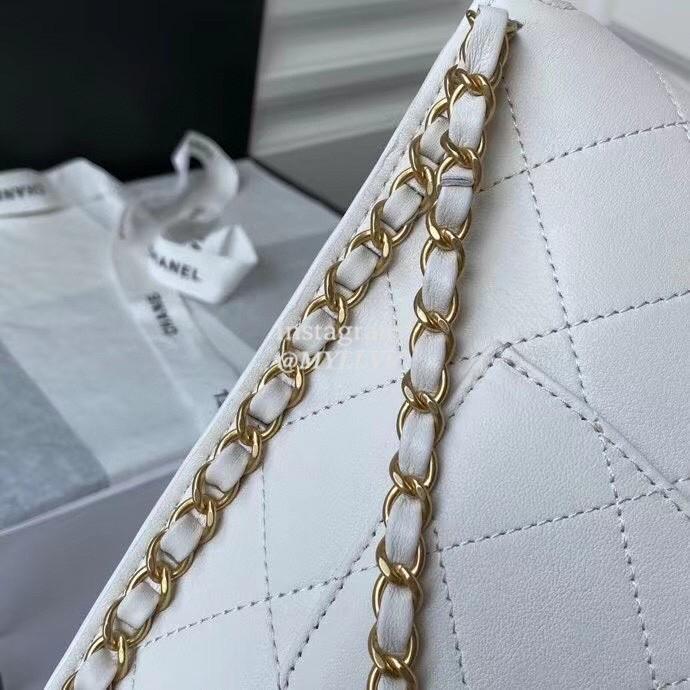 Top Quality Version:MYLLVV » Chanel Diamond Plaid Cowhide Flap Bag White With Gold Large AS2543