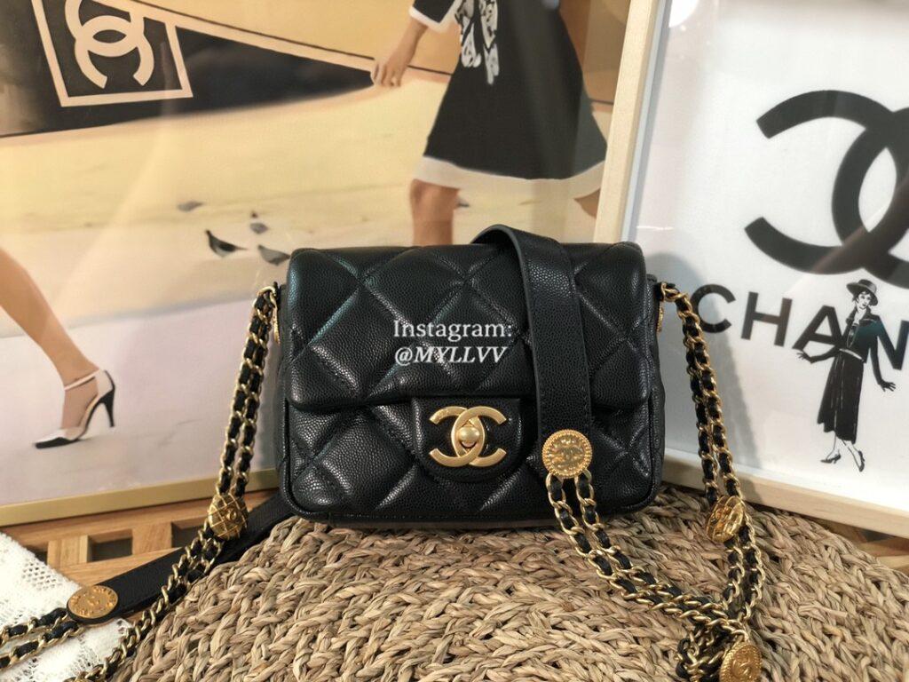 Top Quality Version:MYLLVV » Chanel Diamond Plaid Cowhide Gold Coin Chain Bag Black With Gold A3368