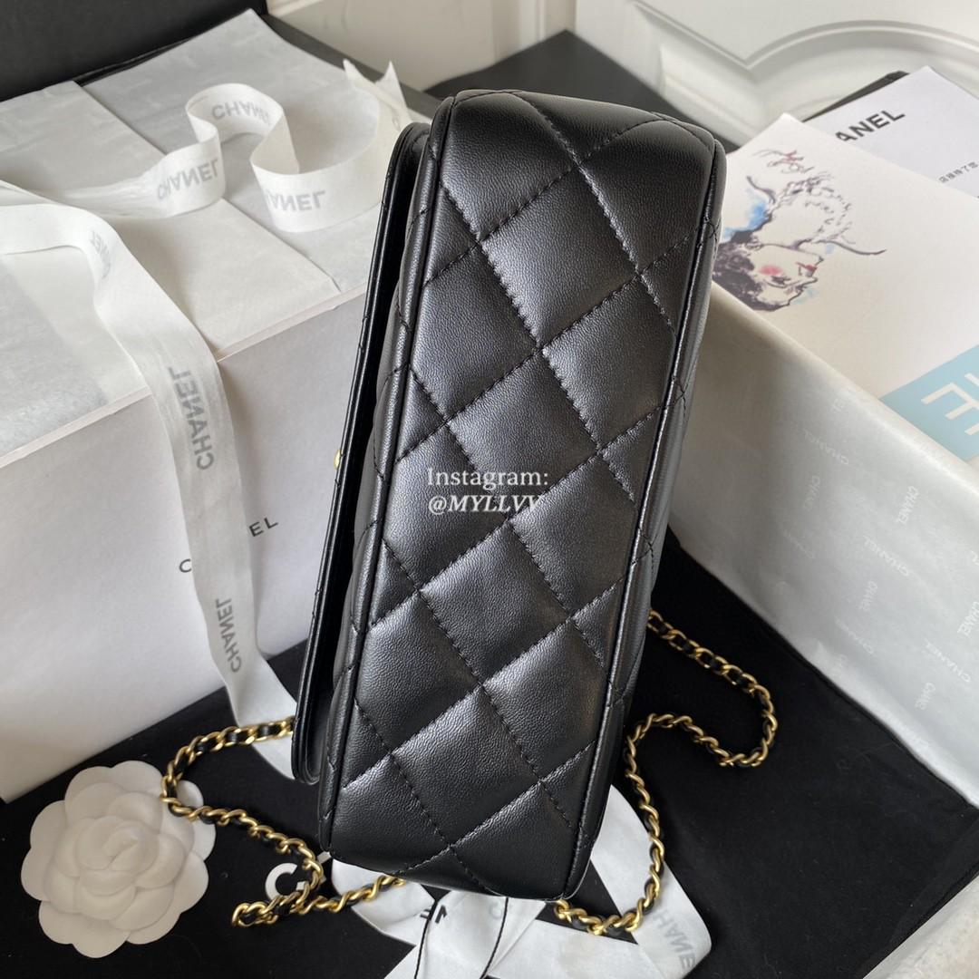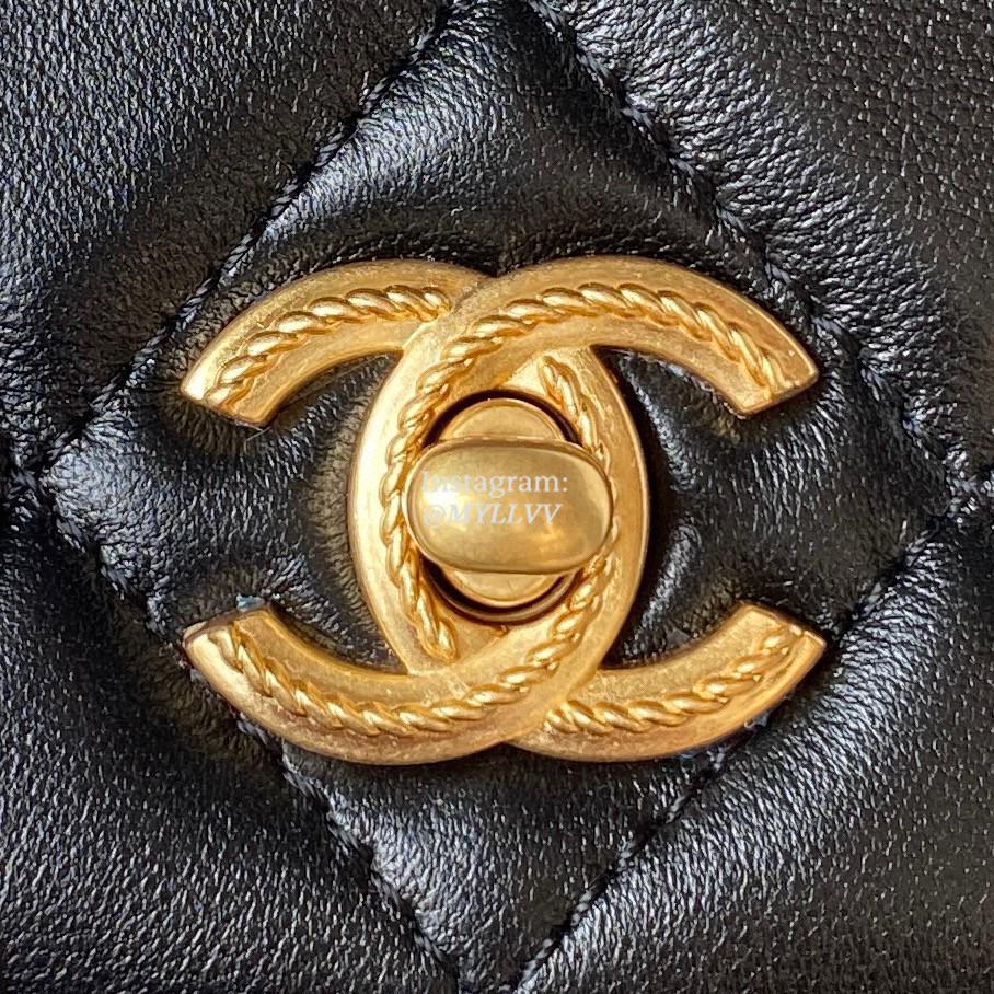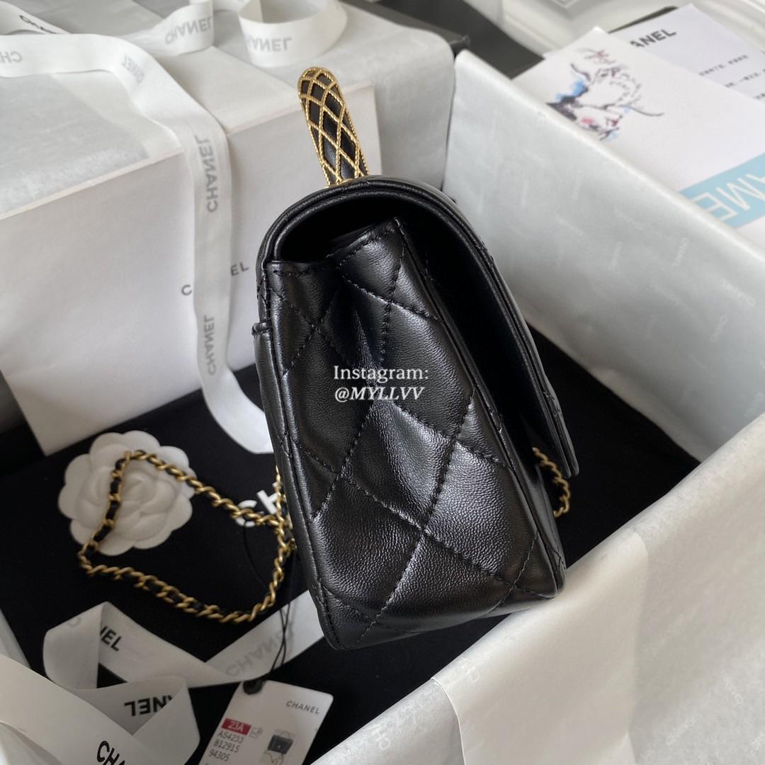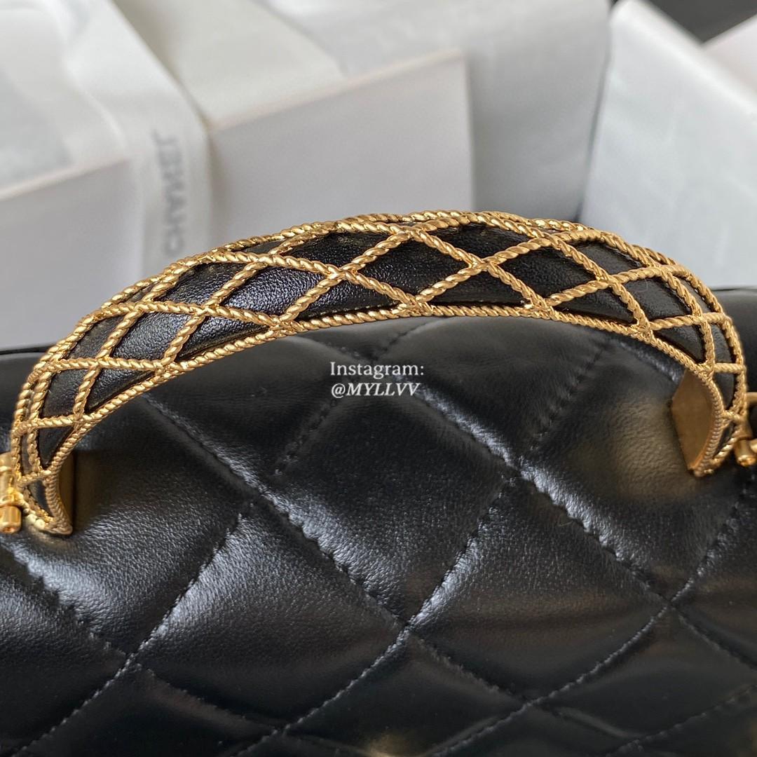Top Quality Version:MYLLVV » Chanel Diamond Plaid Cowhide Handle Flap Bag Black With Gold AS4233