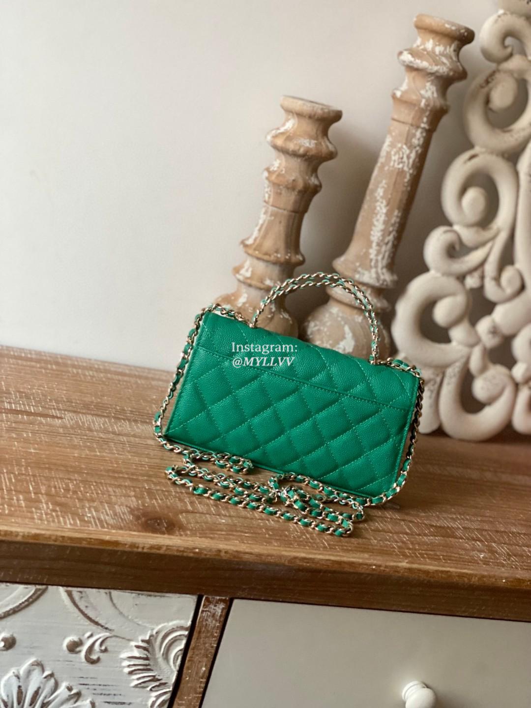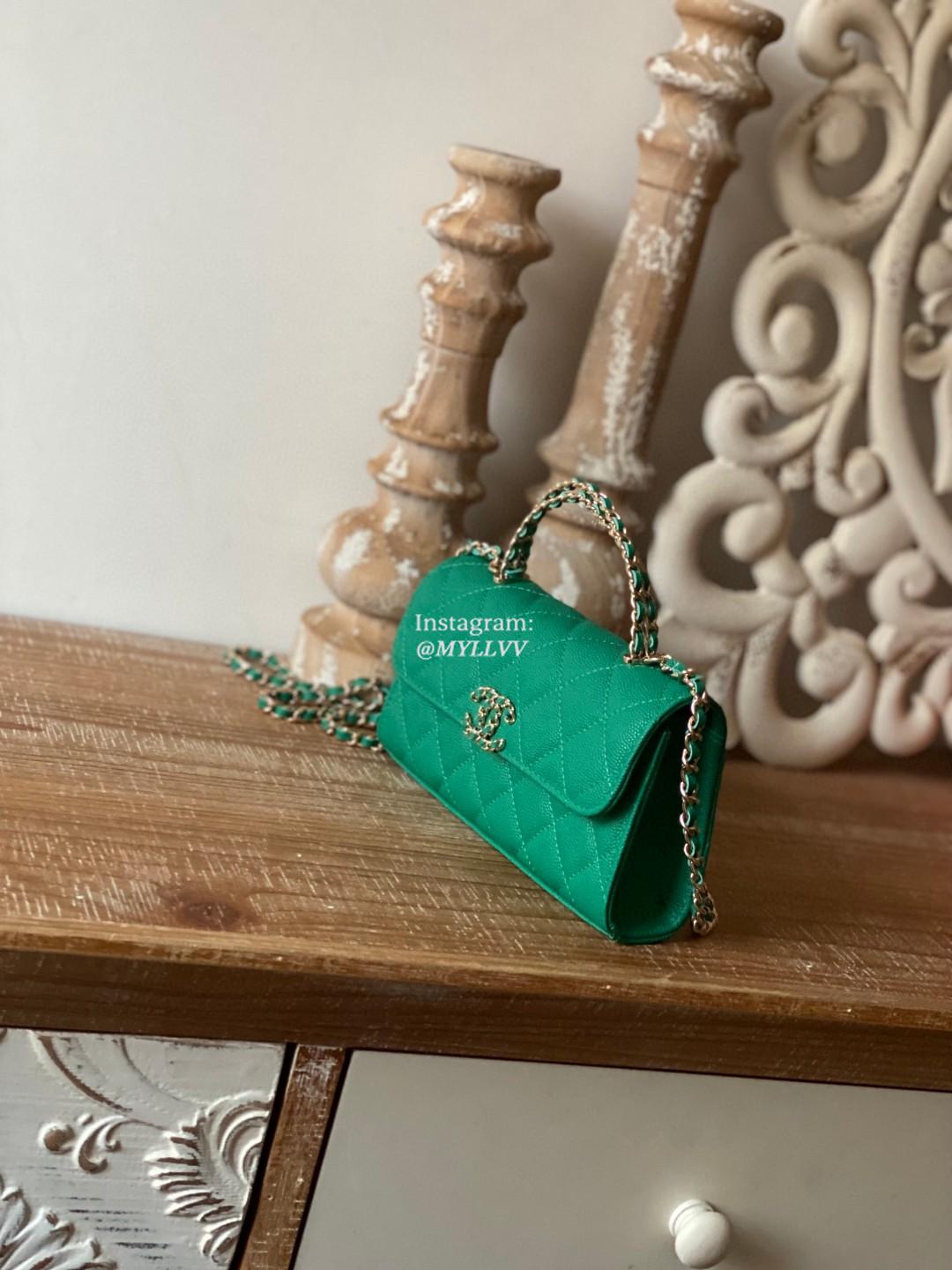 Top Quality Version:MYLLVV » Chanel Diamond Plaid Cowhide Handle Flap Bag Green With Gold AP81249