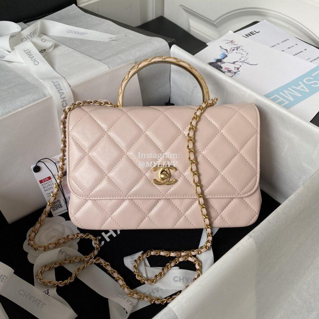 Top Quality Version:MYLLVV » Chanel Diamond Plaid Cowhide Handle Flap Bag Pink With Gold AS4233