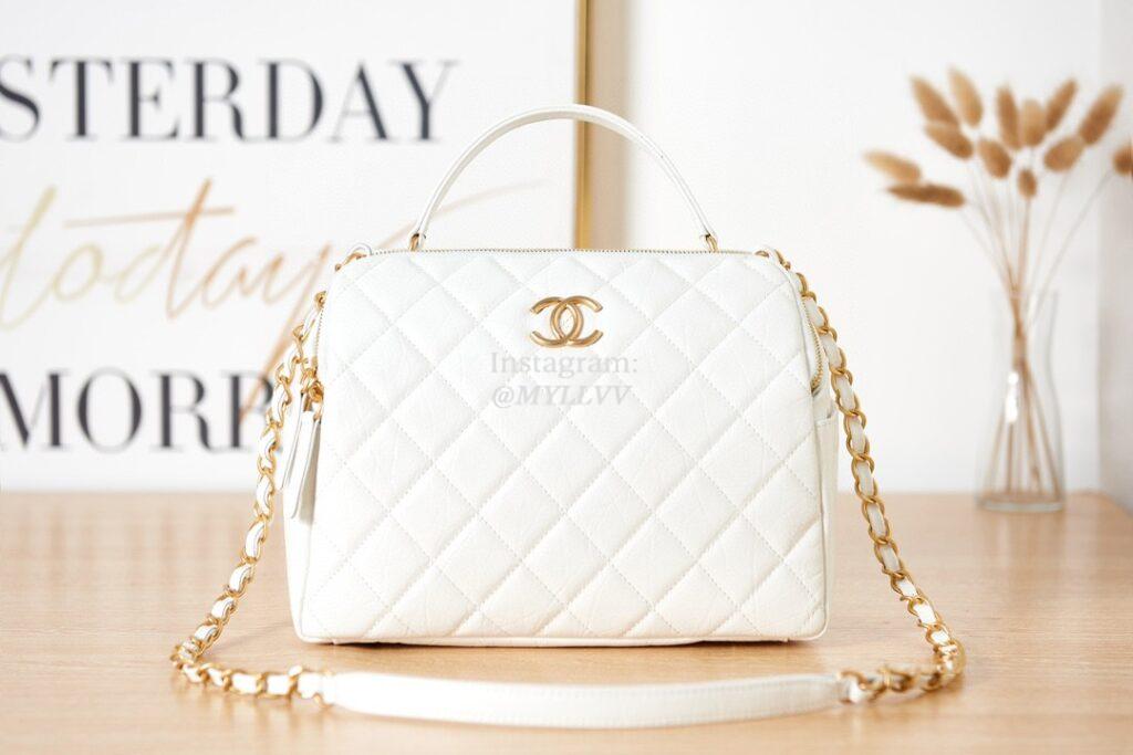 Top Quality Version:MYLLVV » Chanel Diamond Plaid Cowhide Handle Shoulder Bag White With Gold AS3740