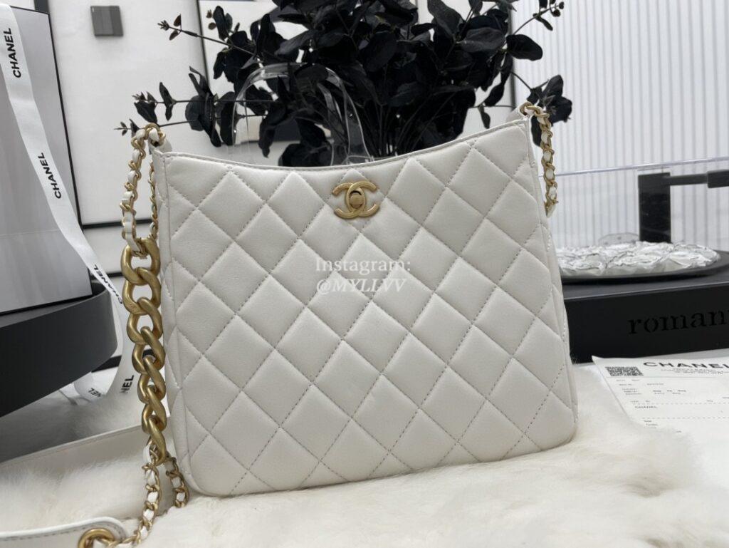 Top Quality Version:MYLLVV » Chanel Diamond Plaid Cowhide Hobo Handbag White With Gold AS3112
