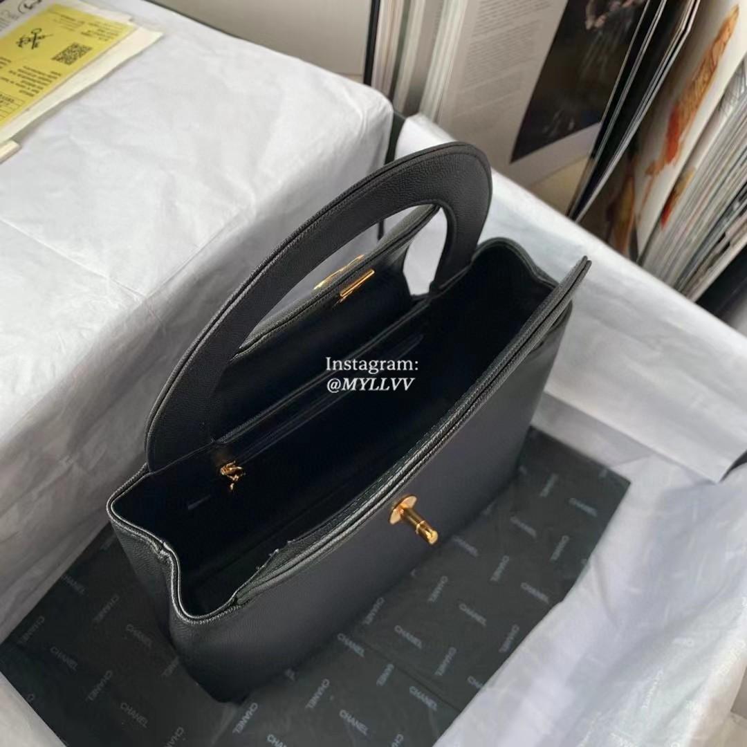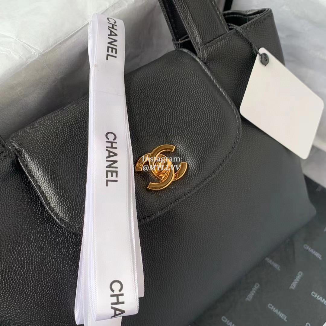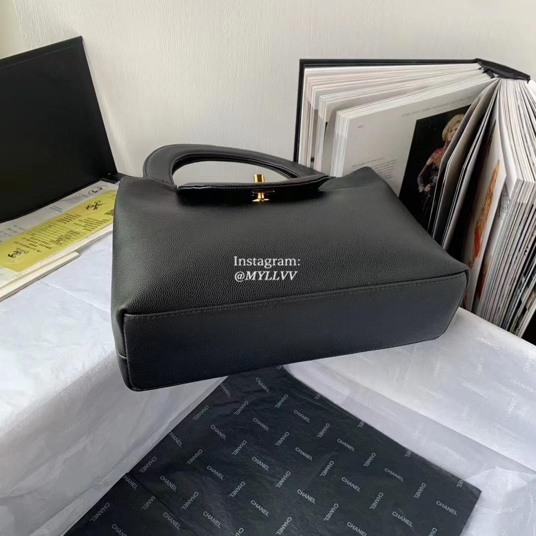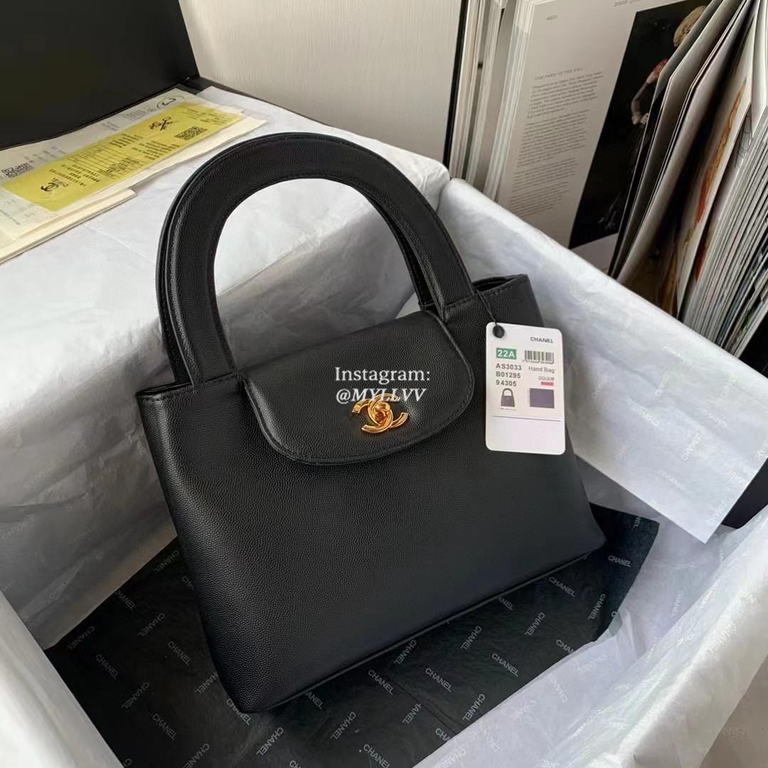 Top Quality Version:MYLLVV » Chanel Diamond Plaid Cowhide Kelly Handle Bag Black With Gold AS3033