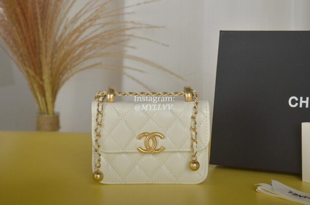 Top Quality Version:MYLLVV » Chanel Diamond Plaid Cowhide Leather Shoulder Bag White With Gold AP2290