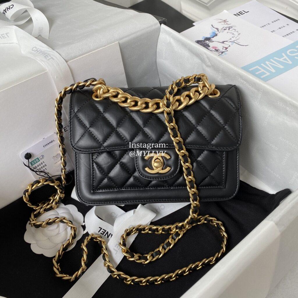 Top Quality Version:MYLLVV » Chanel Diamond Plaid Cowhide Messenger Flap Bag Black With Gold AS4051