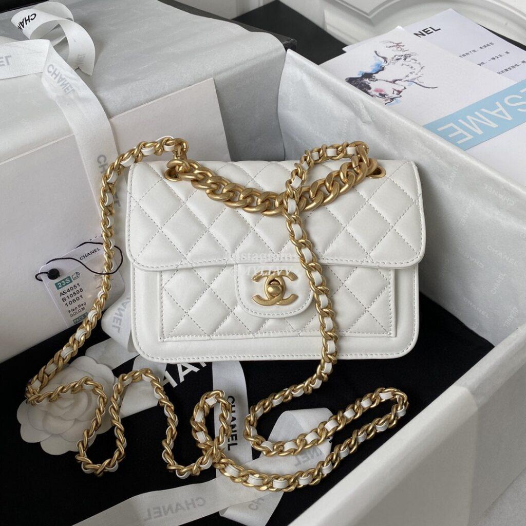 Top Quality Version:MYLLVV » Chanel Diamond Plaid Cowhide Messenger Flap Bag White With Gold AS4051