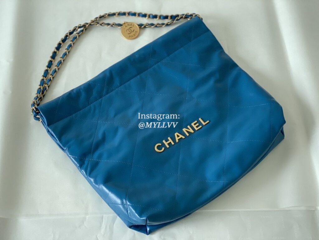 Top Quality Version:MYLLVV » Chanel Diamond Plaid Cowhide Shopping Bag Medium Blue With Gold 3261