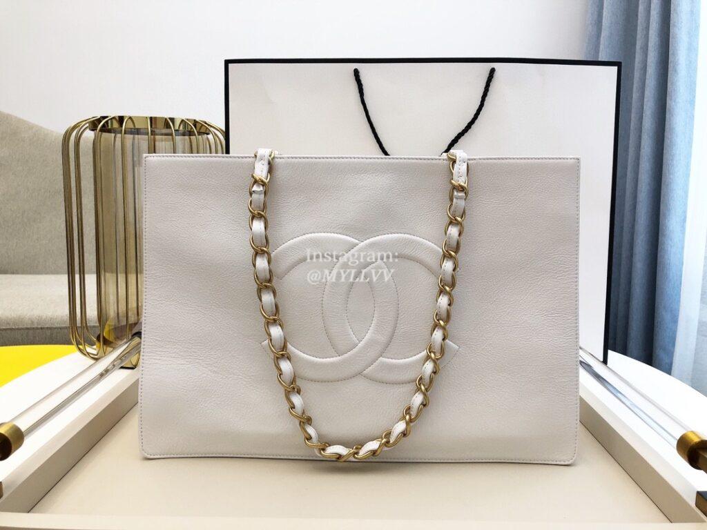 Top Quality Version:MYLLVV » Chanel Diamond Plaid Cowhide Shopping Bag White With Gold AS1943